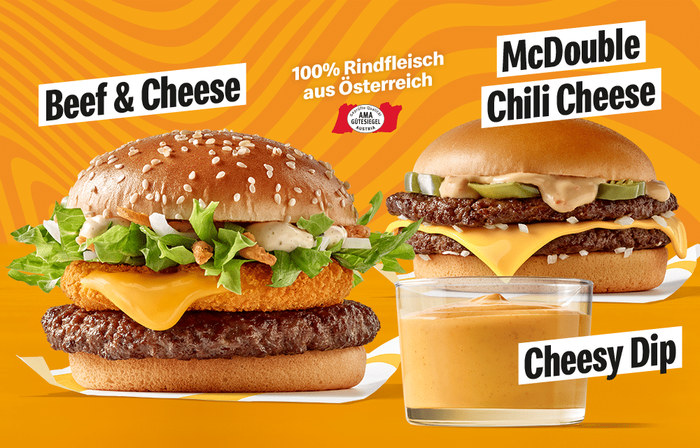 So käsy war’s noch nie! Wir sind komplett käsy gegangen und bringen dir den ultimativen Cheese-Overload! Du denkst, es kann nicht noch mehr Käse geben? Falsch gedacht: Unser Cheesy Dip bringt extra Käsyness in deine Bestellung und macht unsere käsy Burger noch crazier! Pommes? Extra Käse! Nuggets? Mit Kääääääse! Burger? Dip it in cheese! Let’s get crazy with käsy!
