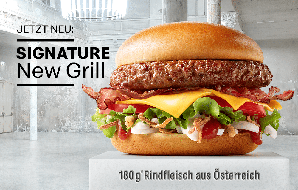 Wann hast du dein Essen das letzte Mal ganz bewusst genossen? Mit geschlossenen Augen jede kleine Geschmacksnuance erkundet und keinen Gedanken an irgendetwas anderes als diesen Moment verschwendet? Die Antwort ist: Zu lange nicht. Ein wahres Gedicht: Der neue Signature New Grill mit 180 Gramm Rindfleisch aus Österreich.