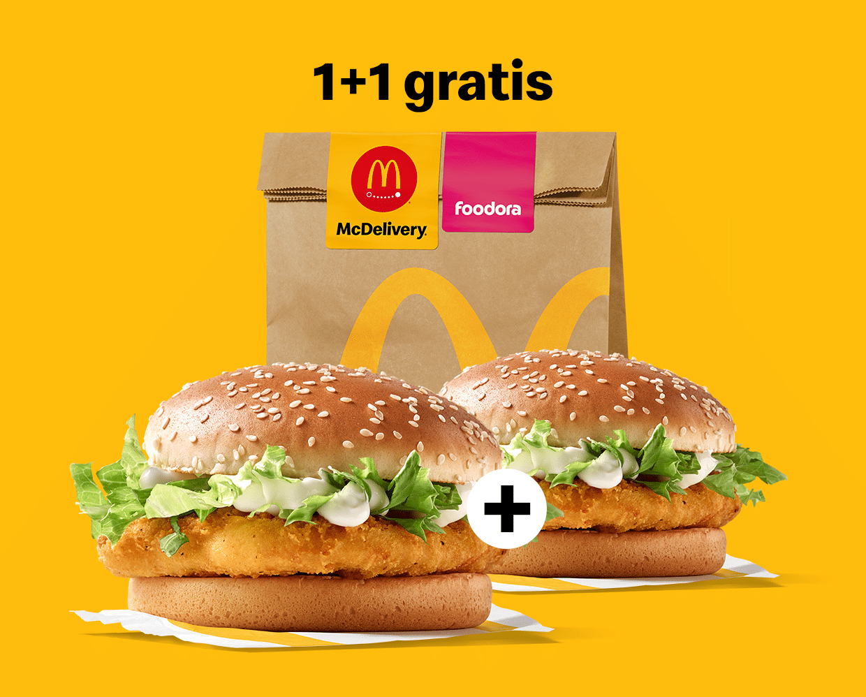 * Beim Kauf eines Hamburger Royal TS, Fresh Veggie Burger, Filet-o-Fish, McChicken oder PopDot Strawberry, PopDot Chocolate, PopDot Straciatella, über die Bestellplattform foodora bis inklusive 10.11.2025 erhalten Kund:innen ein zweites des jeweils gewählten Produktes gratis dazu. Produkte (teilweise) mit Schmelzkäsezubereitung. Panierte Hühnerprodukte aus Hühnerfleischstücken geformt und zusammengefügt. Mindestbestellwert unverändert. In allen teilnehmenden Restaurants in Österreich, solange der Vorrat reicht. Nähere Infos auf www.foodora.at/mcdonalds