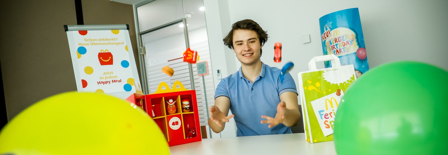 Ich arbeite bei der Planung und Abwicklung sämtlicher nationaler Werbemaßnahmen und Kampagnen für die Bereiche Family, Mac Drive und Tischservice mit. Außerdem erstelle ich diverse Analysen – wie zum Beispiel zu den Kindergeburtstagen – und bereite die Erkenntnisse in Präsentationen auf. Das heißt die administrative und organisatorische Unterstützung im Daily Business der Abteilung ist ein wesentlicher Bestandteil meiner Arbeit.