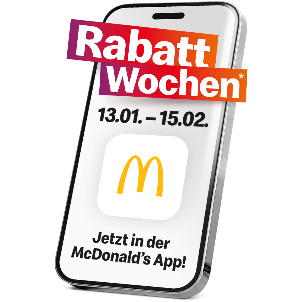* Gültig von 13.01.-15.02.2026 nur für registrierte Nutzer der McDonald’s App, in allen teilnehmenden Restaurants in Österreich, solange der Vorrat reicht. Nicht mit anderen Rabattaktionen kombinierbar oder gegen Bargeld ablösbar. Nicht über McDelivery erhältlich. Nähere Infos zu den Gutscheinen und zur jeweiligen Gültigkeit in der McDonald’s App. Produkte (teilweise) mit Schmelzkäsezubereitung. Panierte Hühnerprodukte aus Hühnerfleischstücken geformt und zusammengefügt. 2x Klassiker nach Wahl: wähle aus Big Mac, Hamburger Royal TS, Hamburger Royal Käse, Filet-o-Fish, McChicken, Fresh Veggie Burger oder 6er Chicken McNuggets).