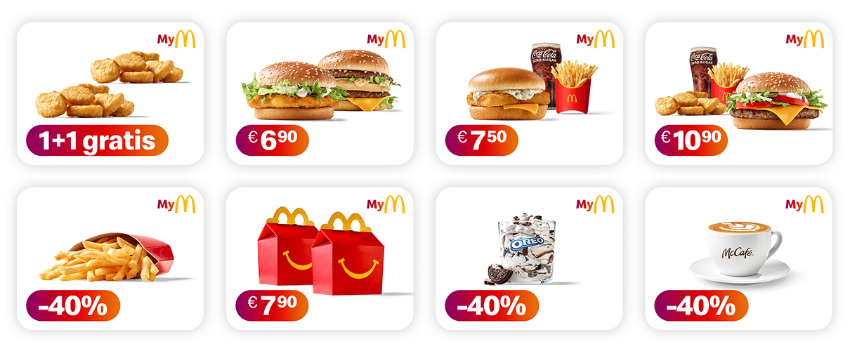 * Gültig von 13.01.-15.02.2026 nur für registrierte Nutzer der McDonald’s App, in allen teilnehmenden Restaurants in Österreich, solange der Vorrat reicht. Nicht mit anderen Rabattaktionen kombinierbar oder gegen Bargeld ablösbar. Nicht über McDelivery erhältlich. Nähere Infos zu den Gutscheinen und zur jeweiligen Gültigkeit in der McDonald’s App. Produkte (teilweise) mit Schmelzkäsezubereitung. Panierte Hühnerprodukte aus Hühnerfleischstücken geformt und zusammengefügt. 2x Klassiker nach Wahl: wähle aus Big Mac, Hamburger Royal TS, Hamburger Royal Käse, Filet-o-Fish, McChicken, Fresh Veggie Burger oder 6er Chicken McNuggets).